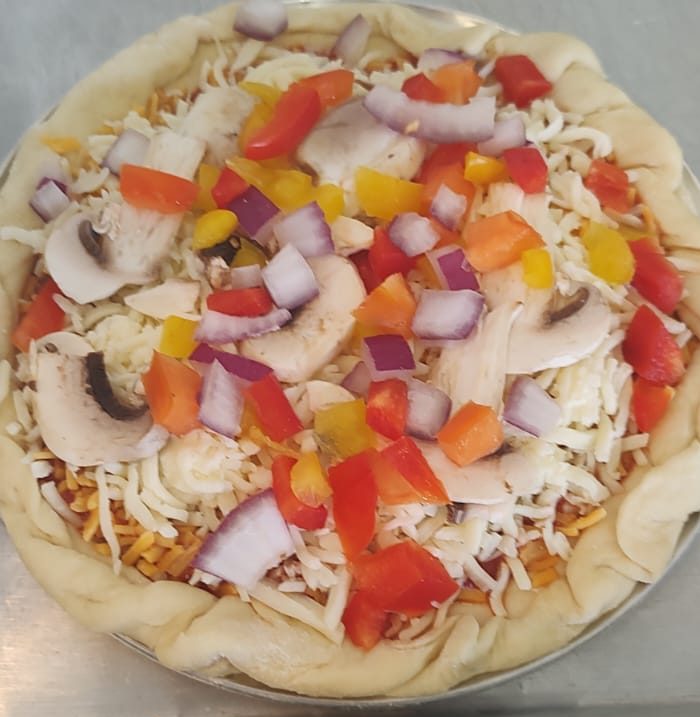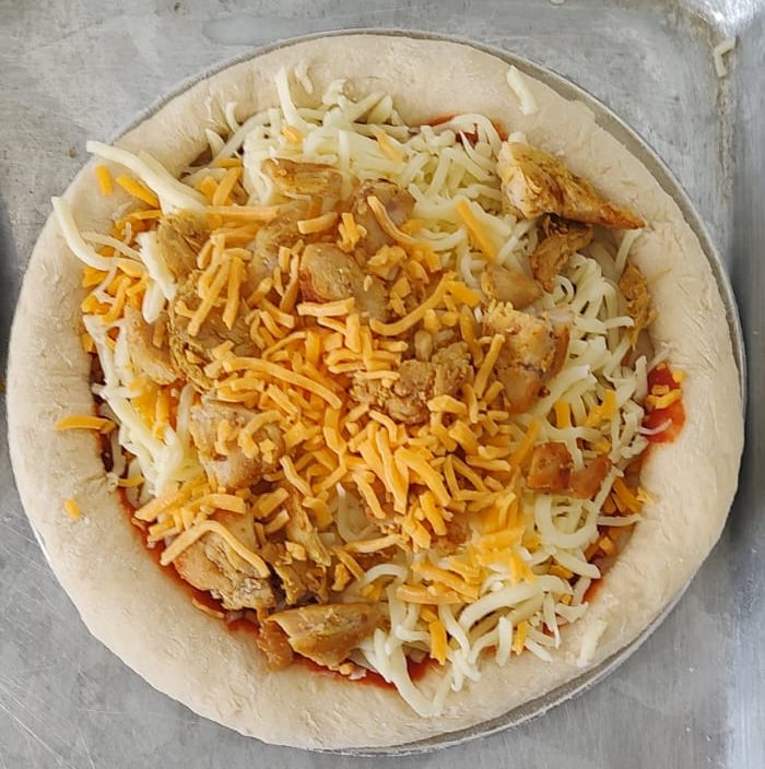 Crafted with love and made to satisfy, our 8″ personal pizza features a homemade crust—perfectly crisp on the outside, soft and chewy on the inside. Each pie is topped with our signature house-made sauce, slow-simmered for rich, bold flavor. Choose from three delicious options: